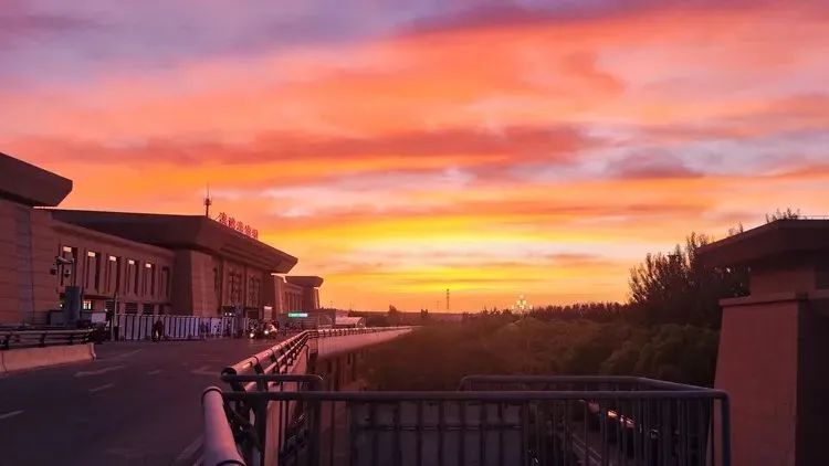 祁连山收拢最后一缕鎏金时,钢铁铸就的站台正被晚霞浸透,七色云霭在幕墙上流淌,像大漠雄关遗落的金戈缠绕着现代文明的棱角。戈壁风掠过千年烽燧,将晚照揉碎在钢轨织就的五线谱上。动车长鸣刺破胭脂色的天穹,与汉长城残垣遥相望。候车厅的灯火次第亮起,橘色光晕漫过月台,恰似烽火台上永不熄灭的戍边篝火。此刻的嘉峪关南站,是丝绸之路上的驼铃,正载着归人的笑语,驶向星子初绽的苍茫。