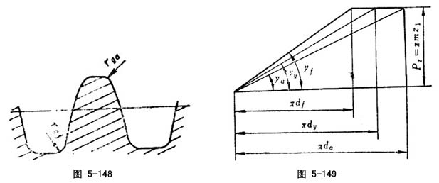 在蜗杆轴向平面上度量的蜗杆齿面与齿顶曲面间过渡圆弧半径(图5-148)。