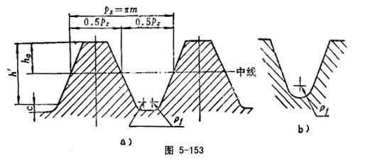 在蜗杆轴向平面上度量的蜗杆齿面与齿根曲面间过渡圆弧半径(图5-148)。