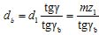 圆柱蜗杆螺旋面与蜗杆同轴线圆柱面的交线称圆柱蜗杆螺旋线。该圆柱面的直径为dy,在其上的螺旋线导程角为γy,则 tgγydy=mz1(图5-149)。